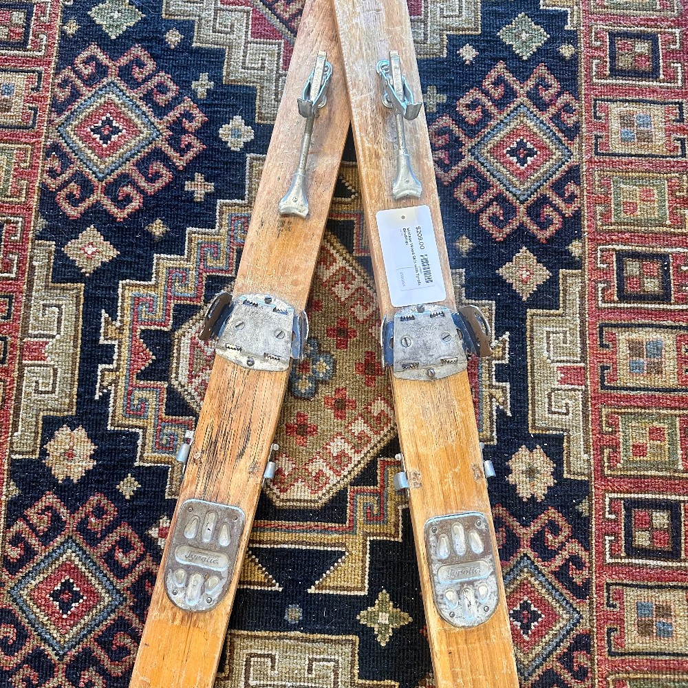 CONDITION: GOOD. Antique Wood Skis with so much character!