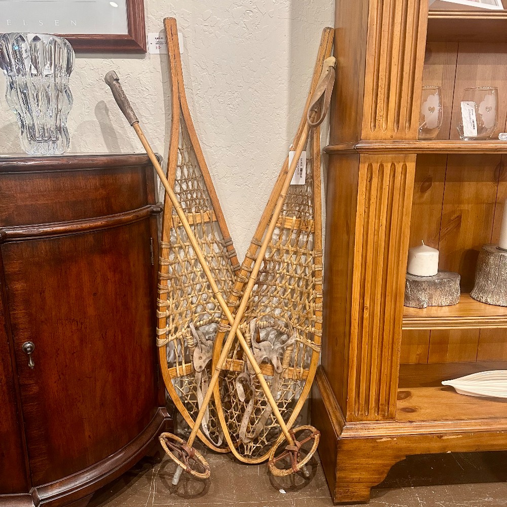 CONDITION: GREAT. Antique Snowshoes with antique bamboo poles.