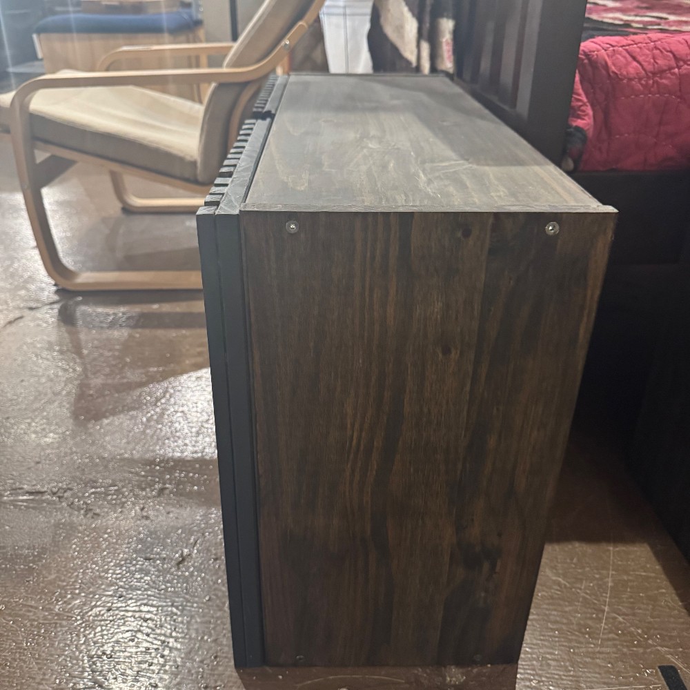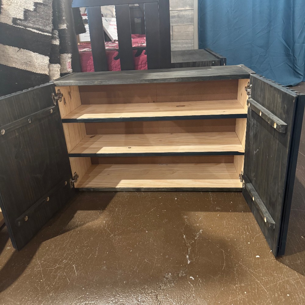 Condition: GOOD - this item does not have legs thus doors touch floor/carpet when open and closing. Some paint drippings on edges. Doors have small gap when closed.