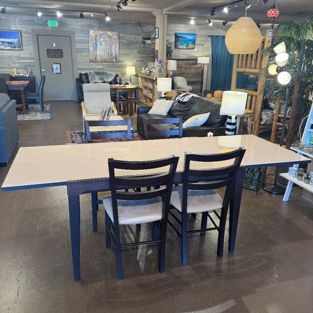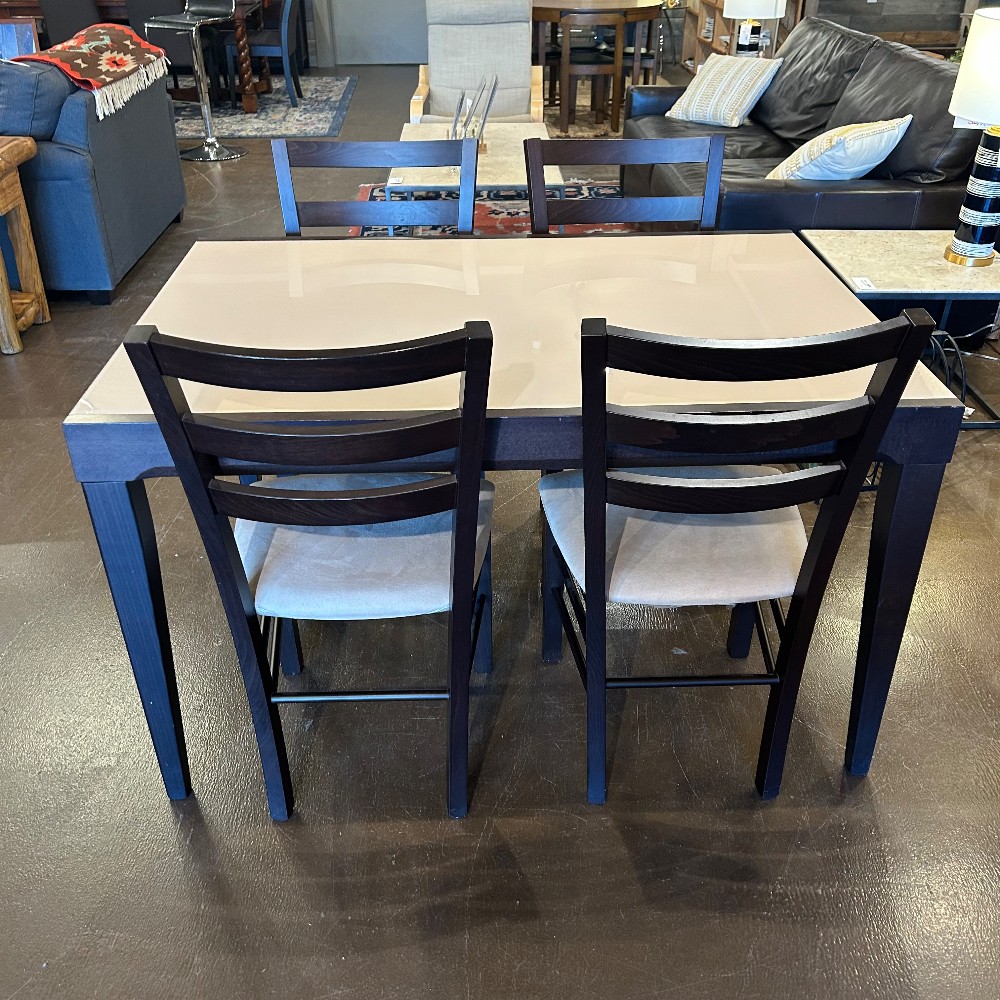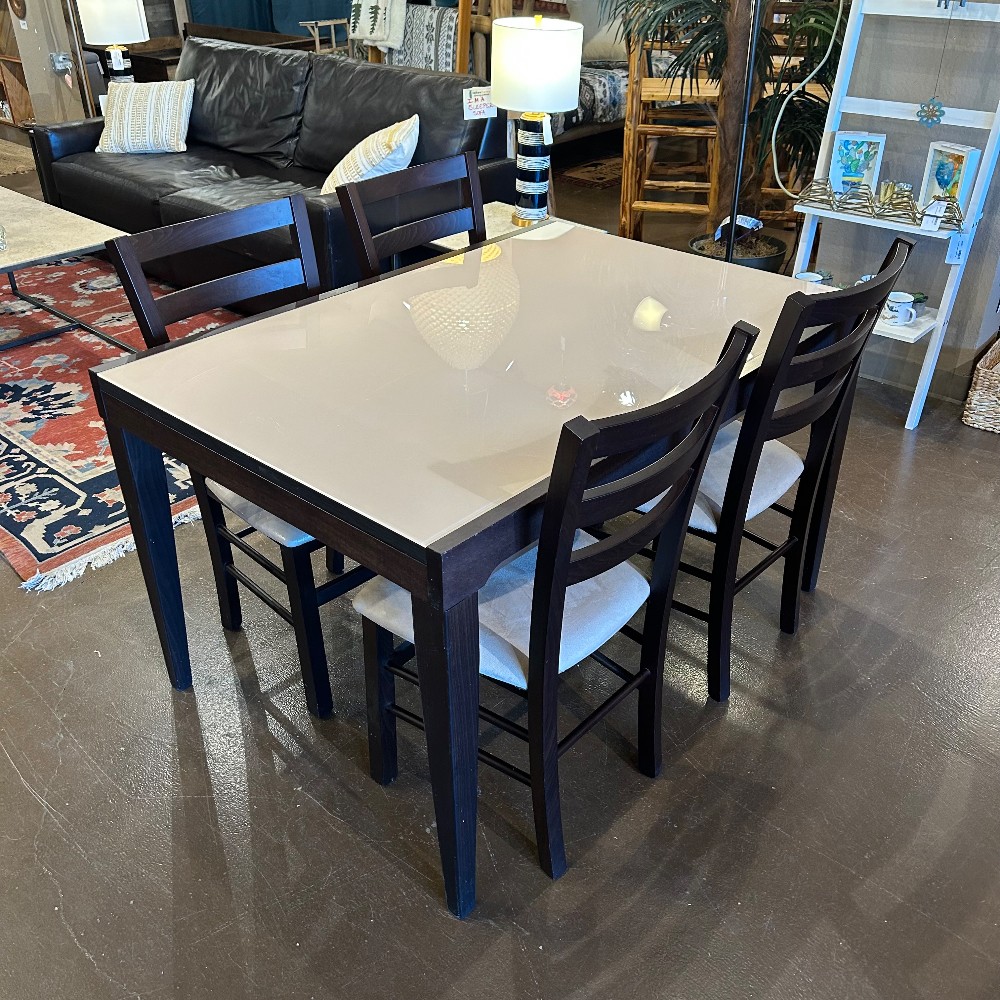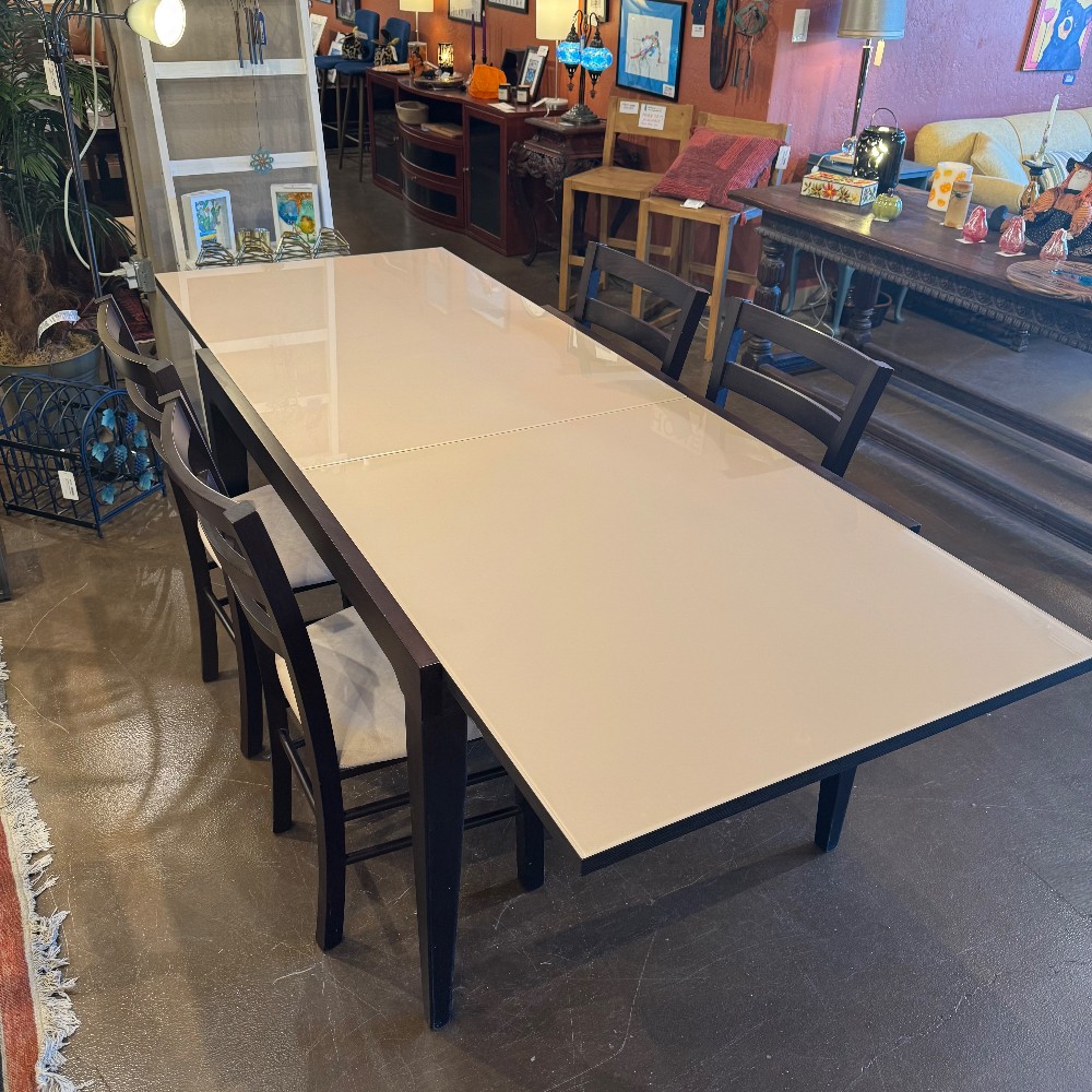 Condition: GREAT! Minor stains on a few of the chairs and some nicks on edges of wood.