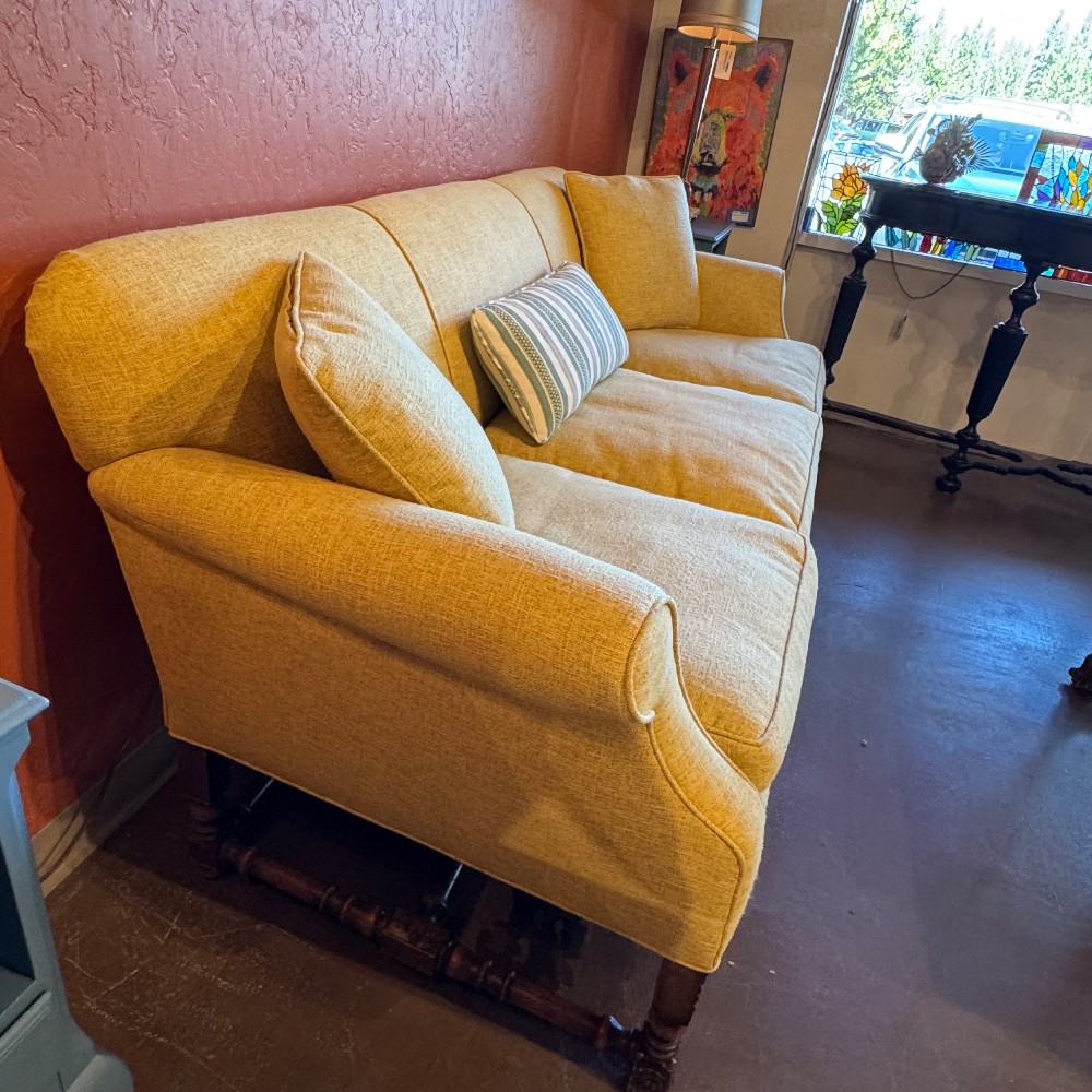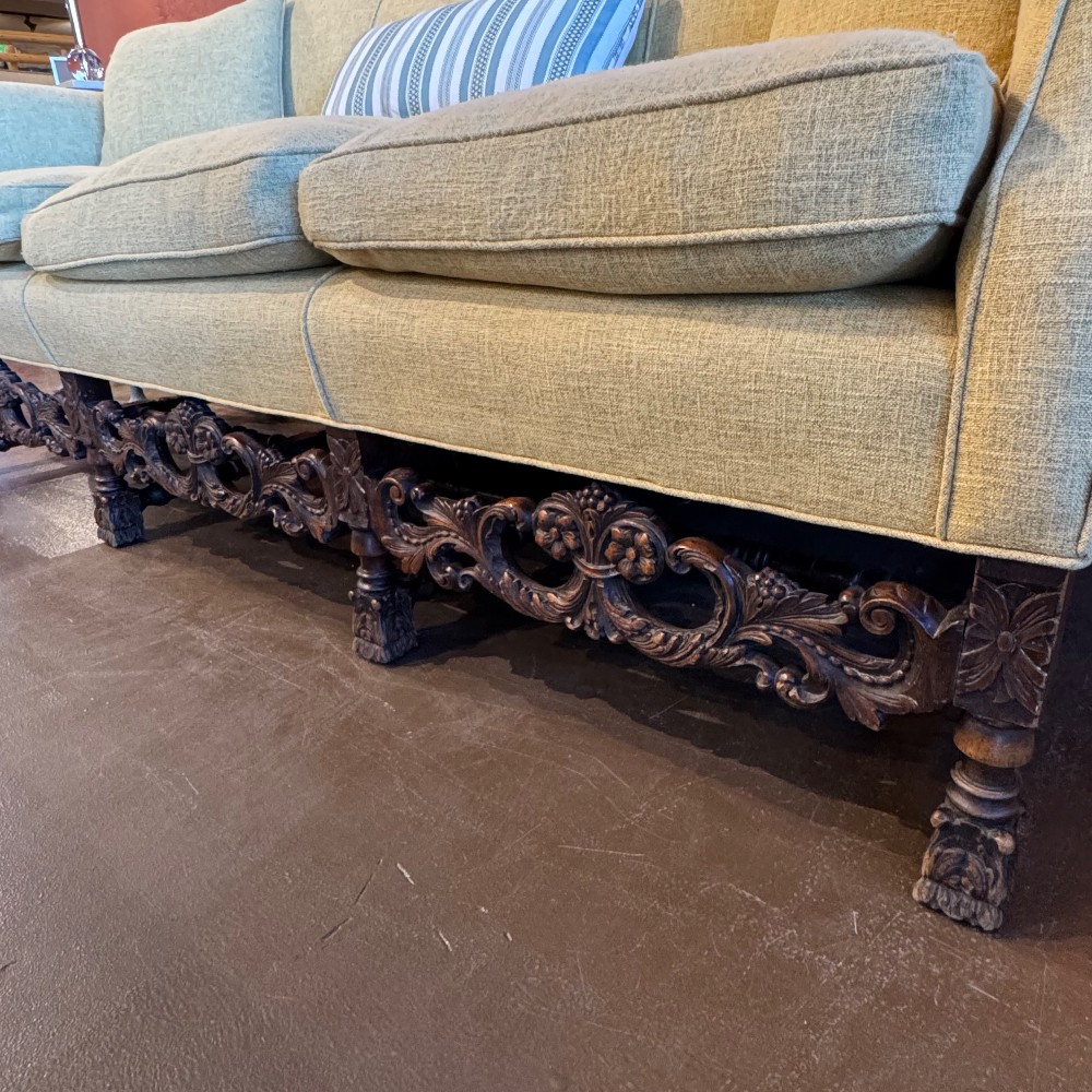 Condition: GREAT! - has some pilling on fabric from regular use otherwise in excellent condition with spectacular wood carving details!